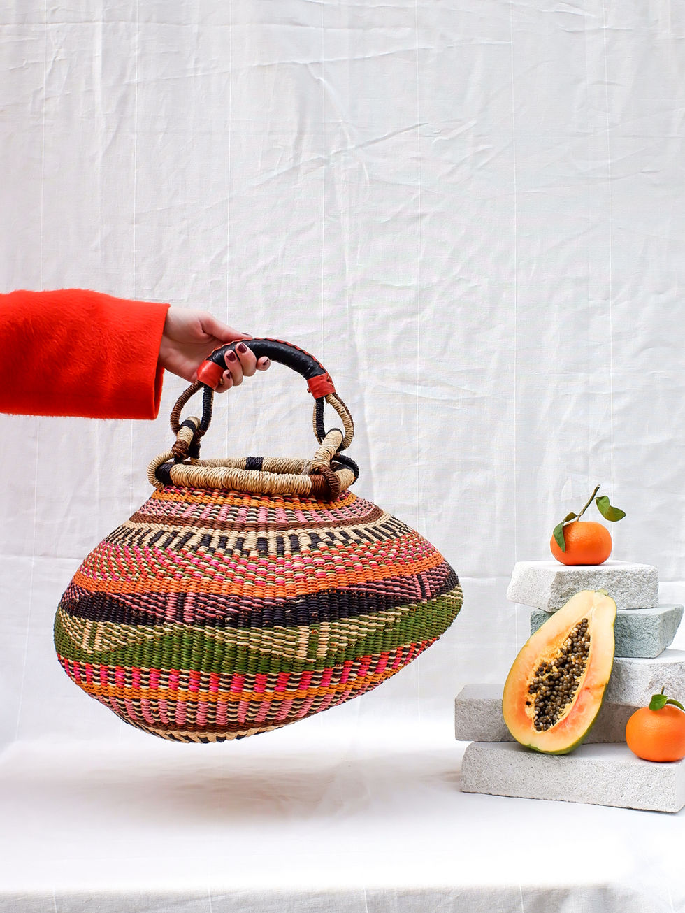 The Baba Tree Basket Company based in bolgatanga, aspires to a new model of ethical business that sees all of us as partners in an unfolding global transformation. each basket comes directly from the hands of the artisan weavers themselves - energetic, colourful, purposeful. each luscious curve is the handprint or signature of the weaver who has expertly handcrafted your basket, the unique differences in each and every piece are celebrated.